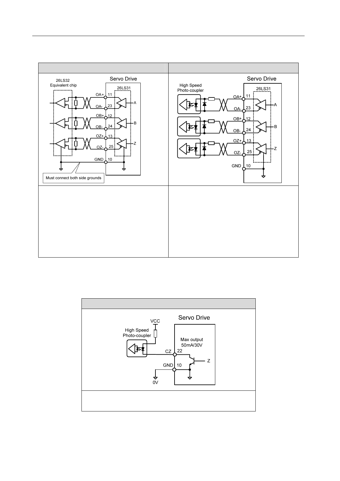 z Encoder signal (GND) of servo driver must