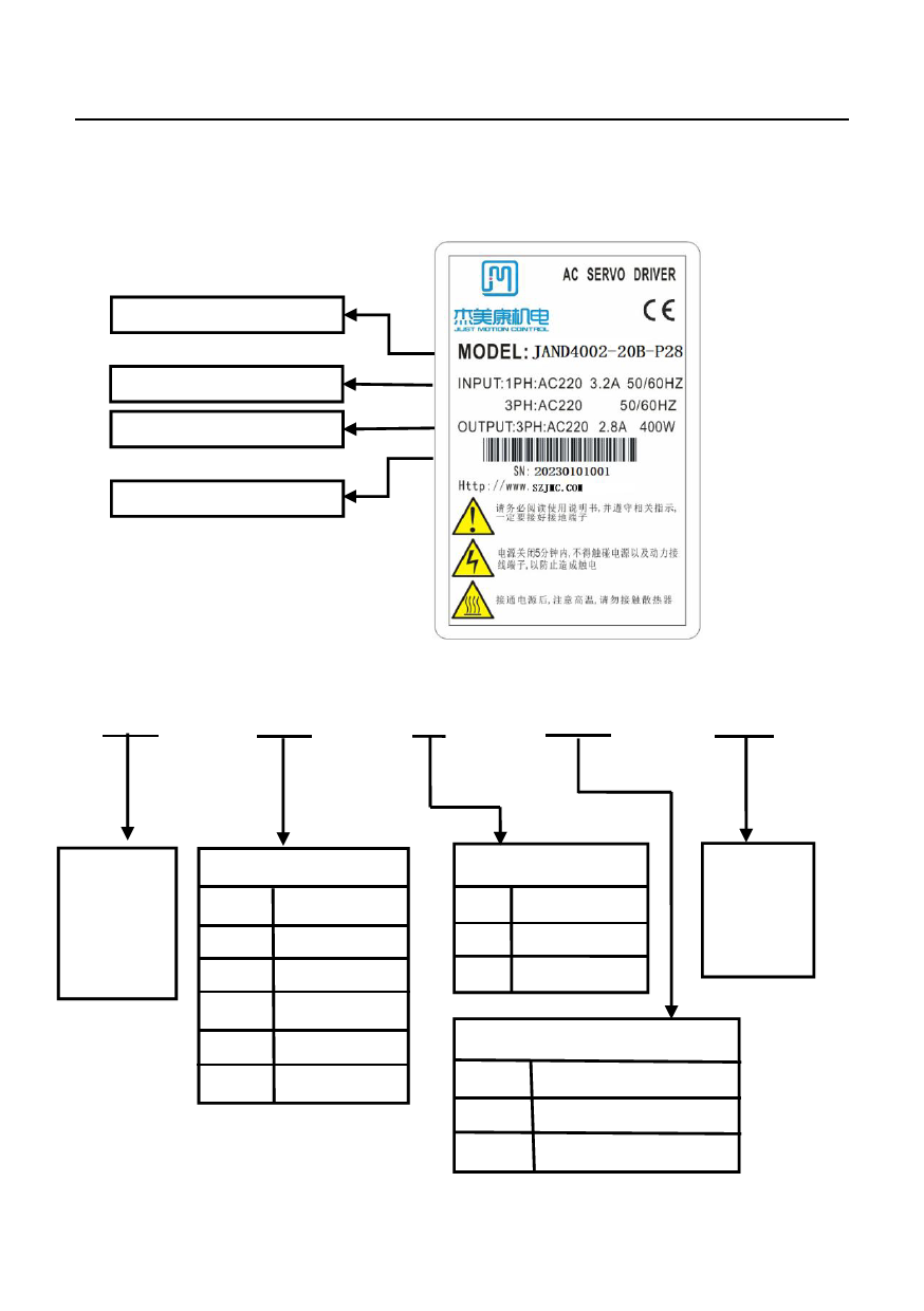 2.1.4 Servo driver nameplate and model description