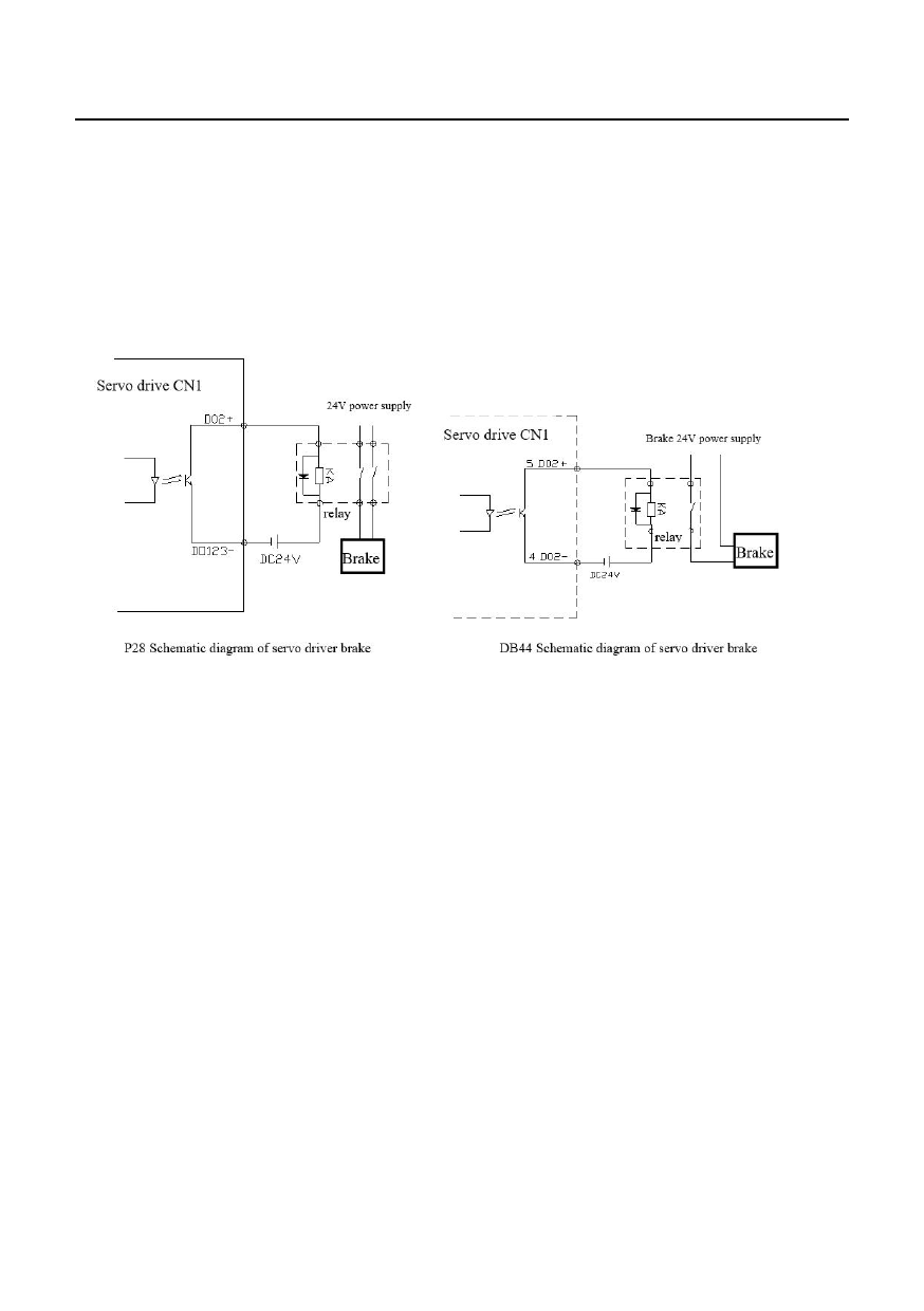 Note: 1. DO 2+/D123-in CN1 controls the relay coil for the factory contracting brake function of P28 driver,
