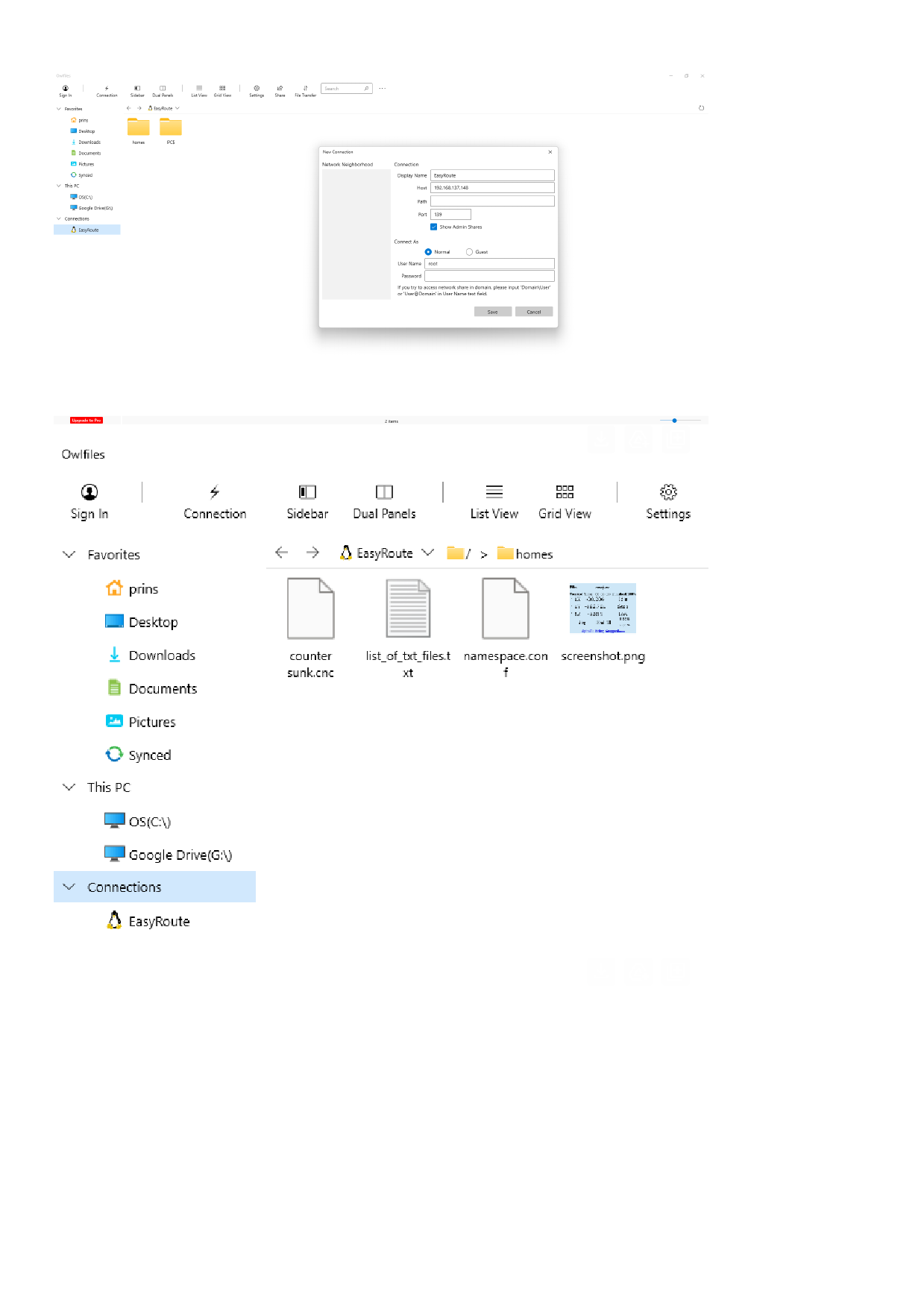 Download owlfile (on microsoft app store) and add a new connection as below.