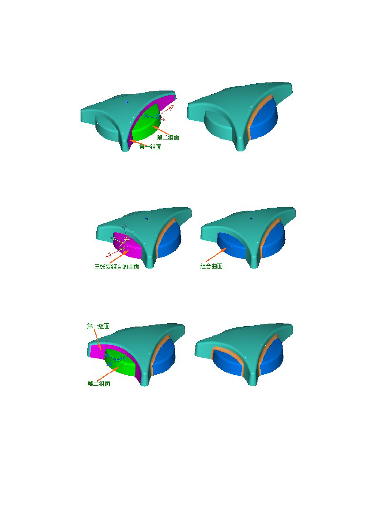 15) 曲面组合:选择如图 10-5-17(a)中的三张曲面进行组合操作,生成一张组合曲面,