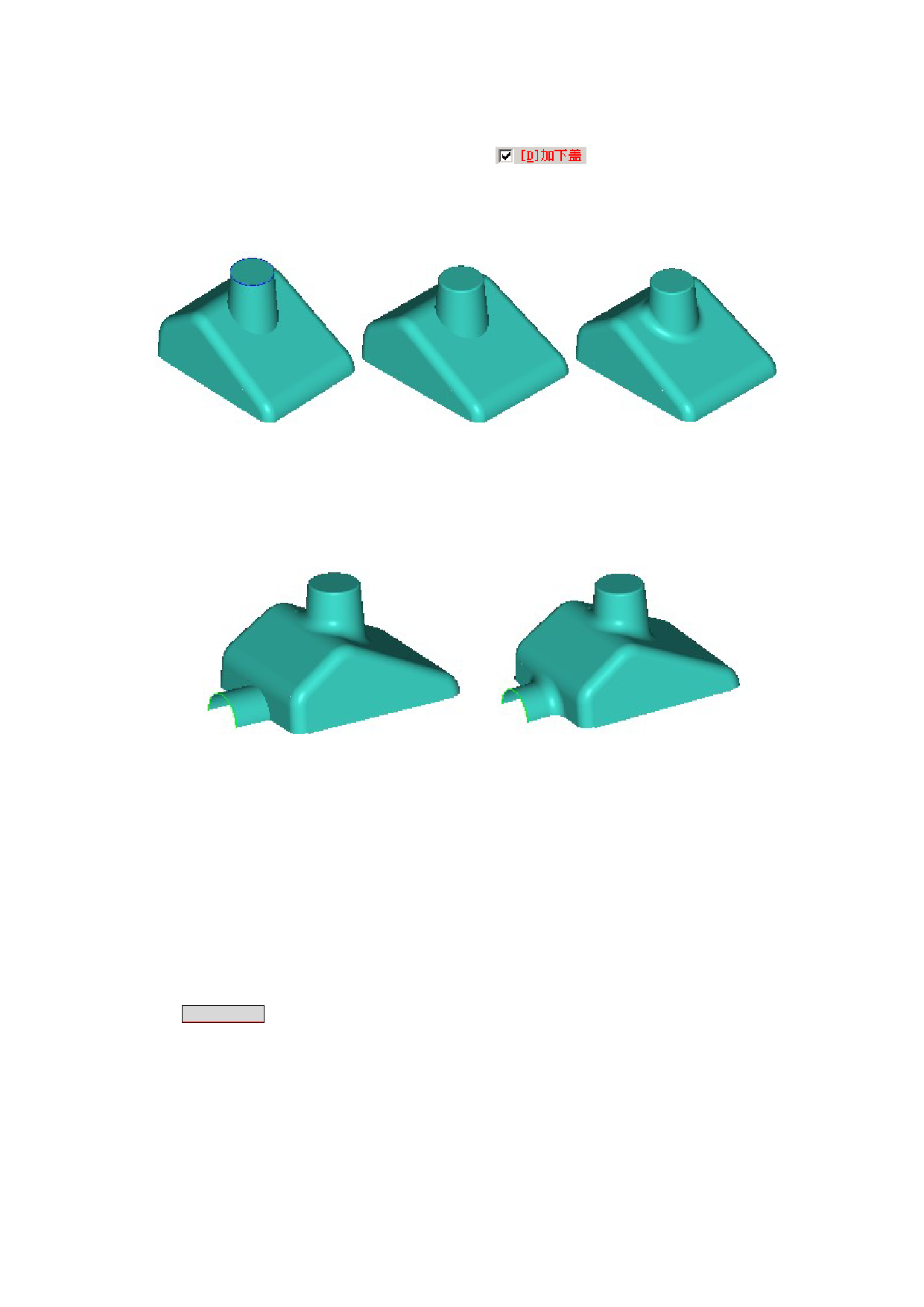 图 2-18 拉伸曲面构造凸台 图 2-19 凸台顶部曲面倒角 图 2-20 凸台曲面与模型上部曲面倒角