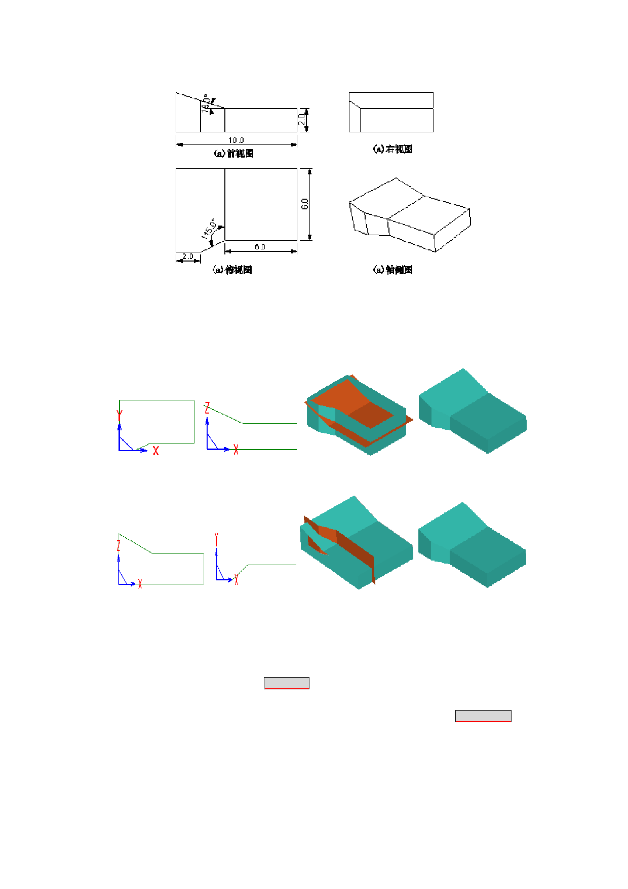 的 XOY 平面和 ZOX 平面中分别绘制特征曲线,然后分别对两个平面中的曲线进行拉伸,最