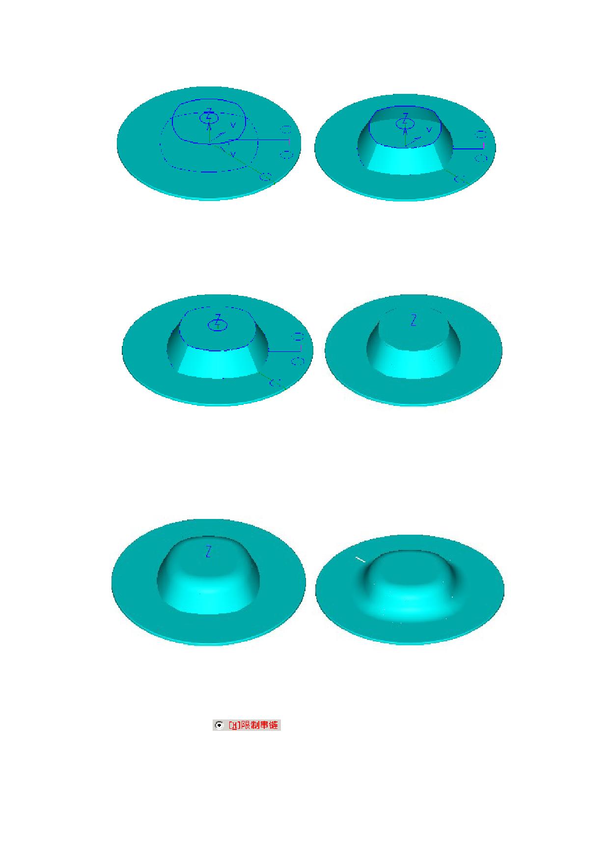 图 4-12 顶面与直纹面及它们之间的倒角面进行倒角 图 4-13 底面与直纹面及它们之间的倒角面倒圆角
