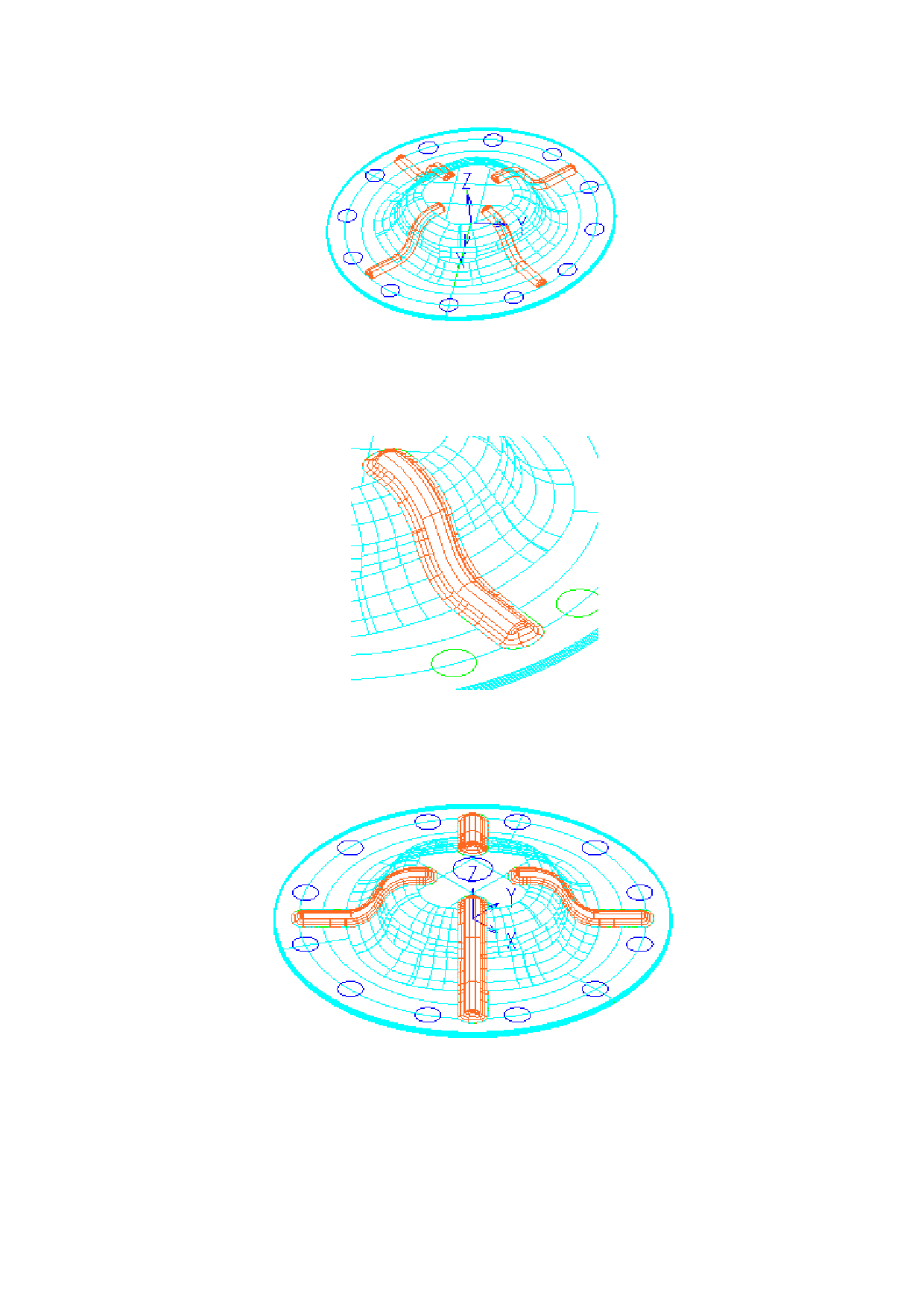 图 4-21 其它三组肋板凸台曲面与模型中与其相邻接的曲面倒圆角