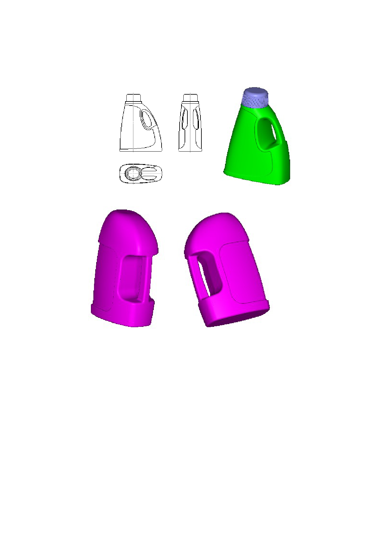 是通过单向蒙皮的方法构造的,其中的构造曲线为平面曲线投影到曲面上获得;②瓶