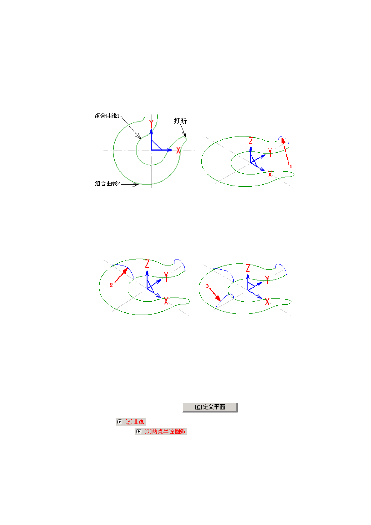 过在绘制圆弧命令中的定义绘制平面的方法来定义截面线 4 的绘制平面;具体方法: