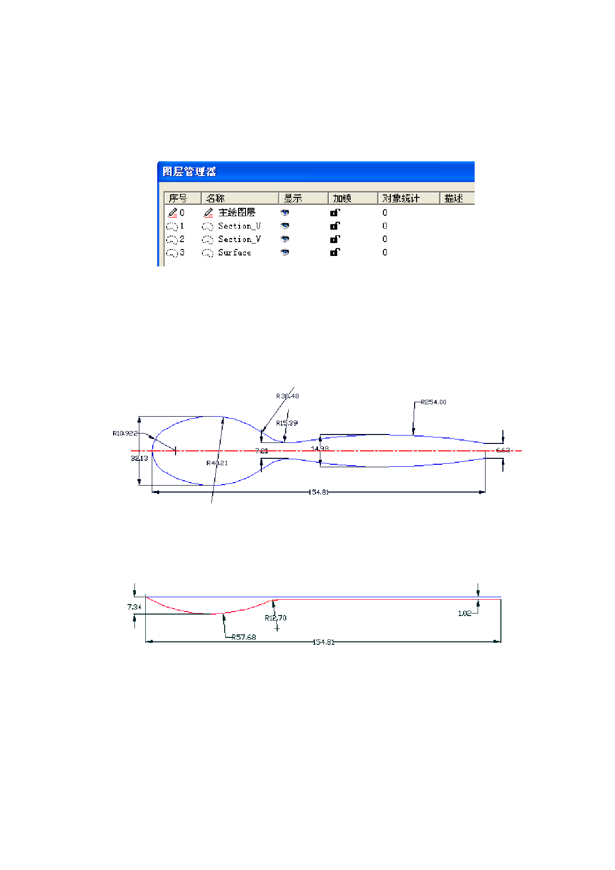 在图层管理器中新建三个图层,名称分别为 Section_U,Section_V 和 Surface;如图 6-