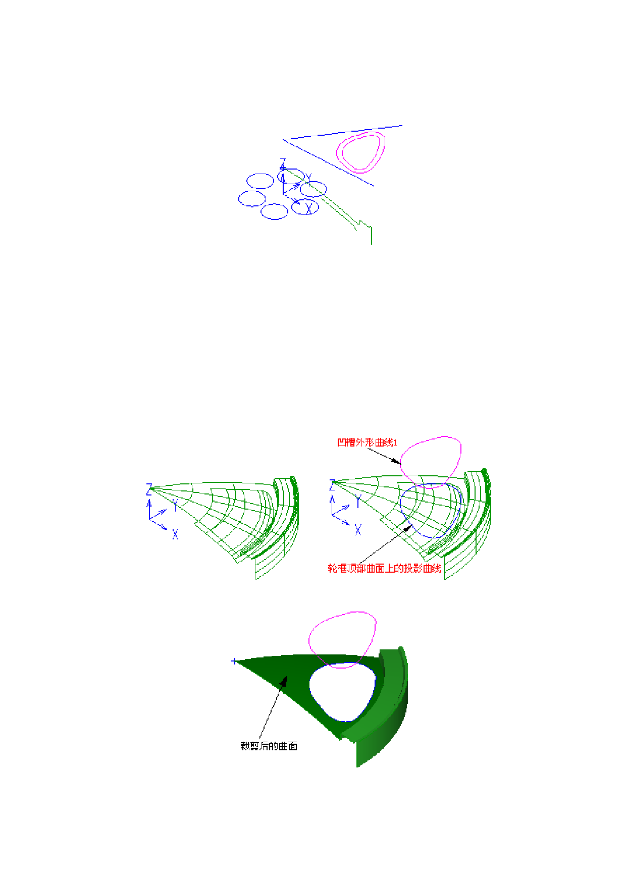 图 8-10 用得到的投影曲线裁剪轮框顶部曲面结果