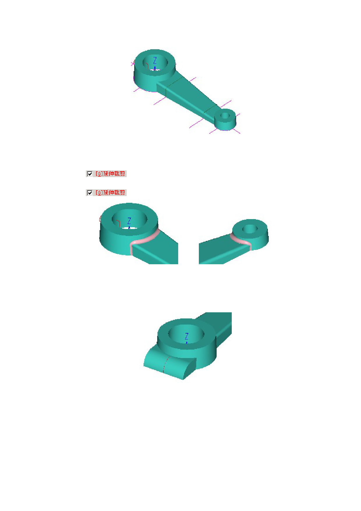 图 9-11 连杆部分曲面与大轴孔外圆面倒角 图 9-12 连杆部分曲面与小轴孔外圆面倒角