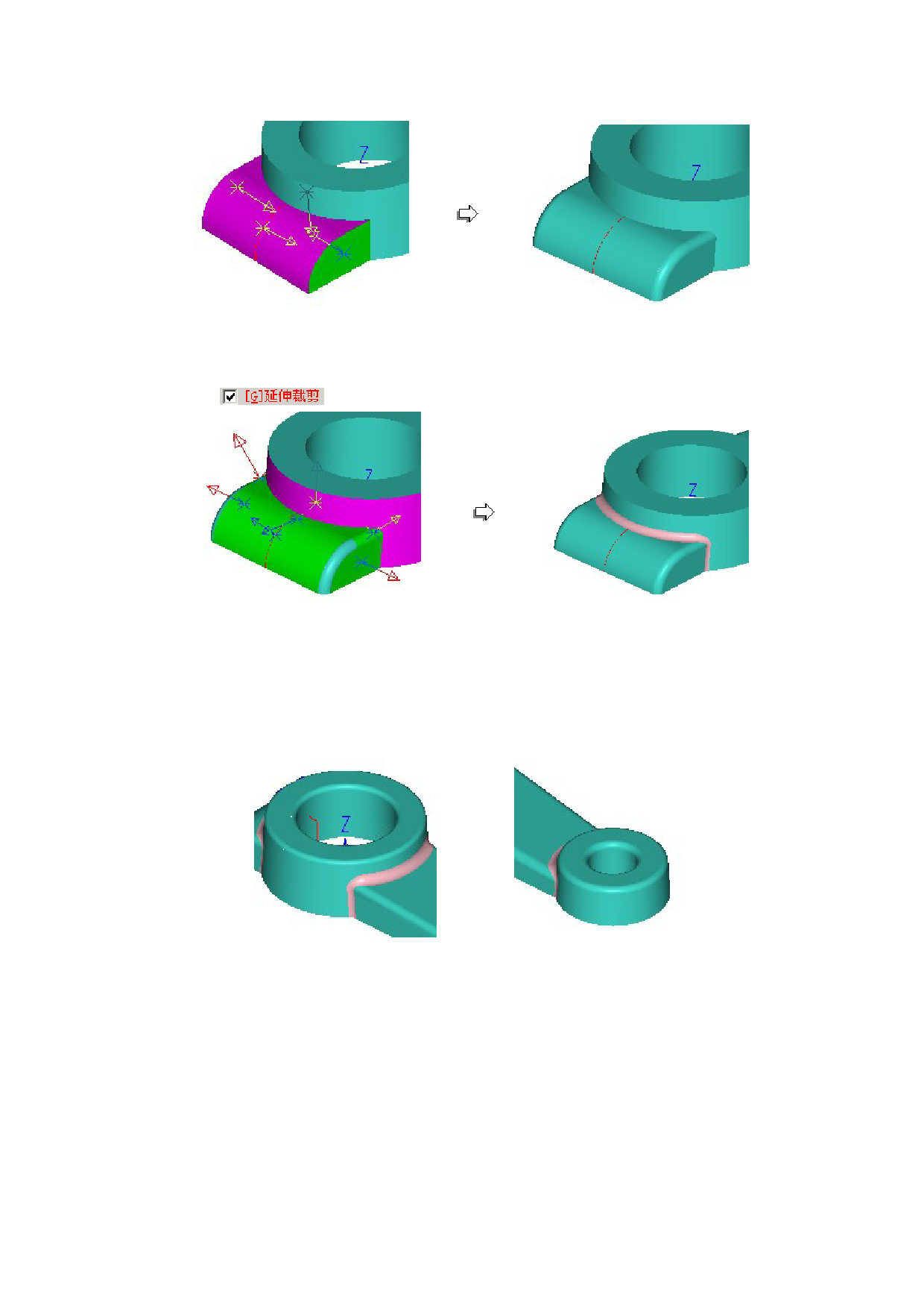 图 9-16 大轴孔上盖曲面与其内外圆面倒圆角 图 9-17 小轴孔上盖曲面与其内外圆面倒圆角