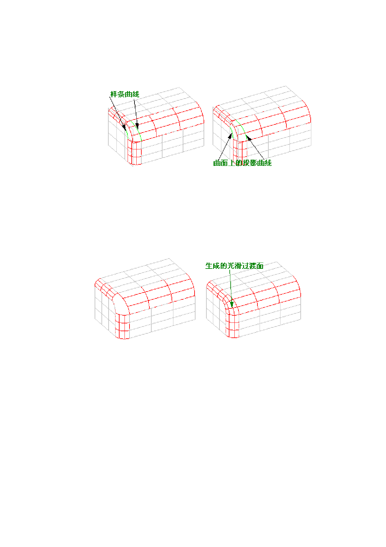 由于这两条样条曲线不在面 A 和 R=5 的倒角面上,因而现将这两个曲线分别