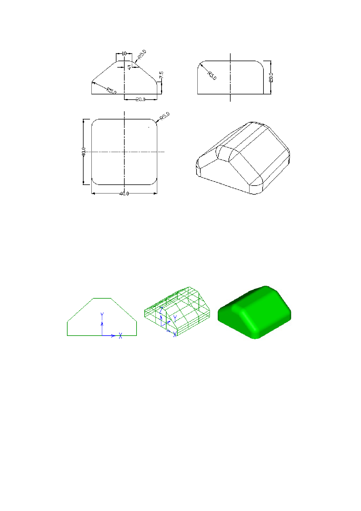 拉伸曲面:将截面线沿 Y 轴正向拉伸 40.0mm, 加上盖和下盖,拉伸完毕后将底