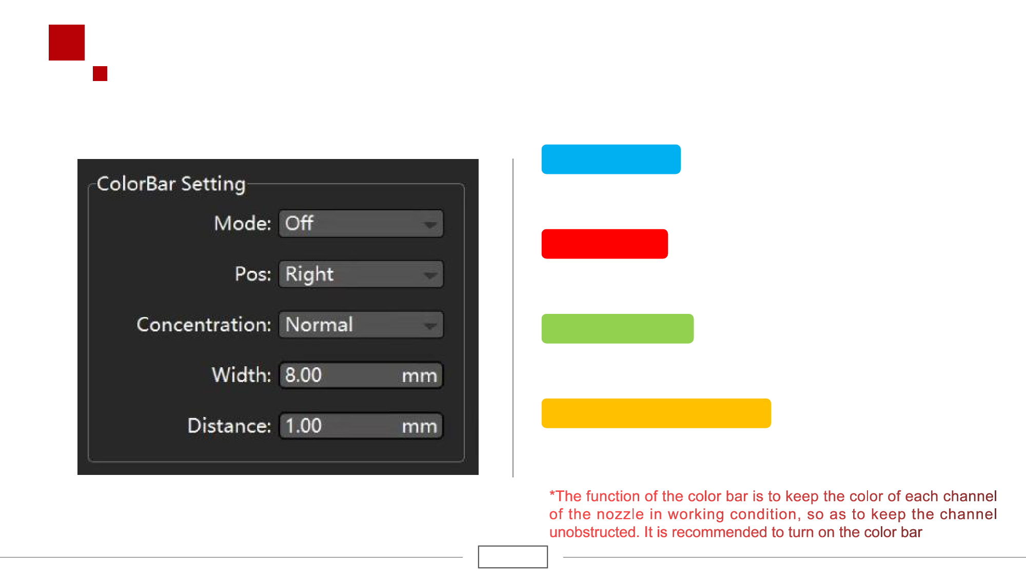 The width of the color bar and the distance from the printed