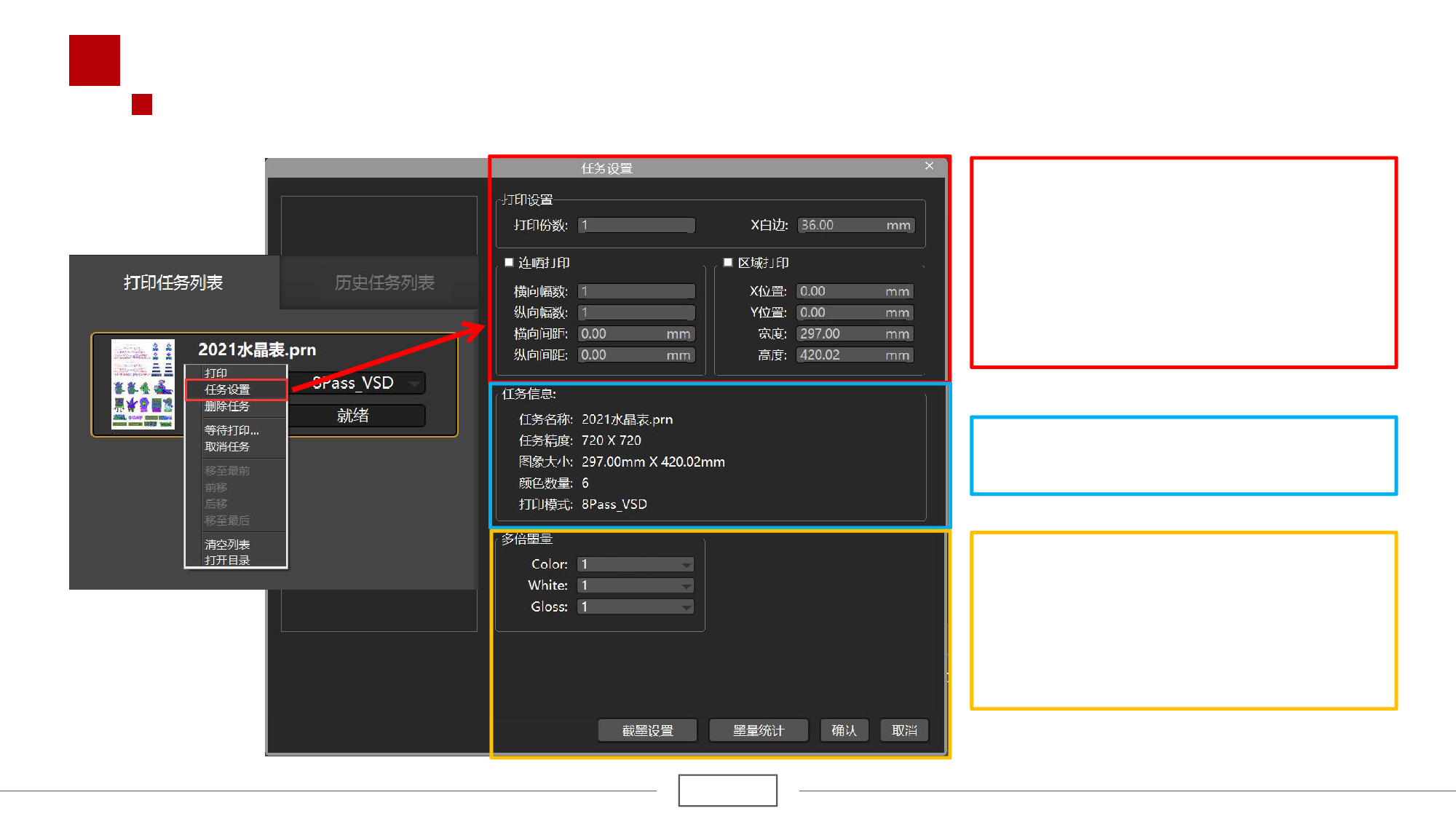 u 打印设置:可控制打印任务的