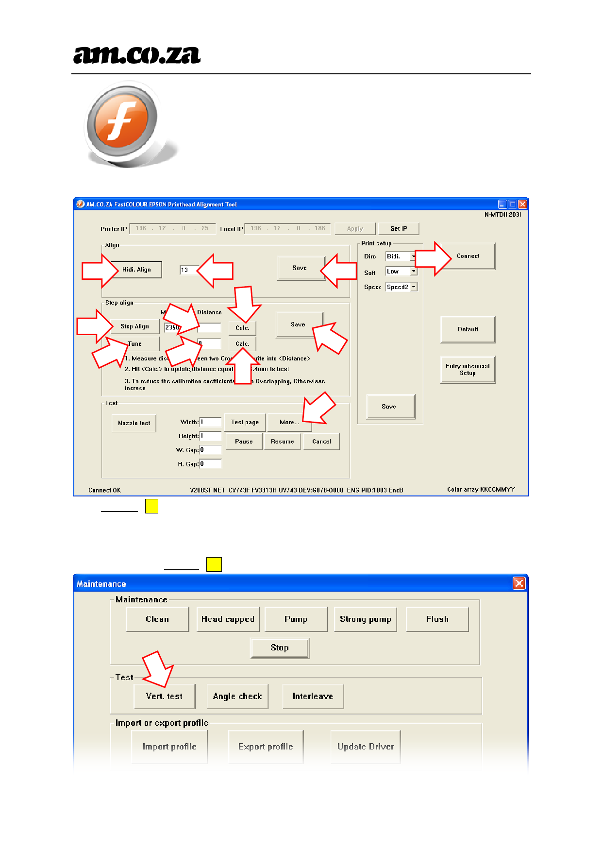 Click “Connect” A Button to connect to your AM.CO.ZA FastCOLOUR Printer. If cannot connect,