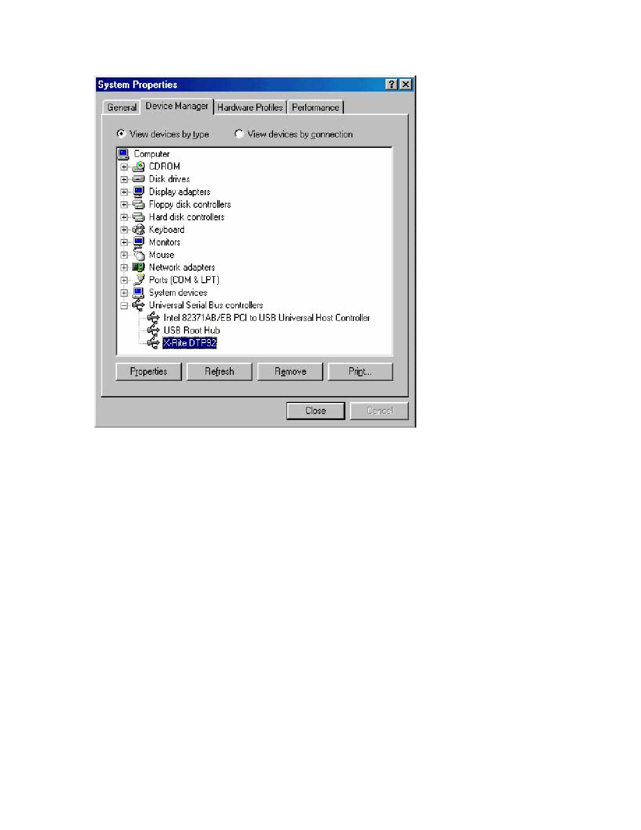 In the system properties viewer, you will see the updated X-Rite device in the Universal Serial Bus