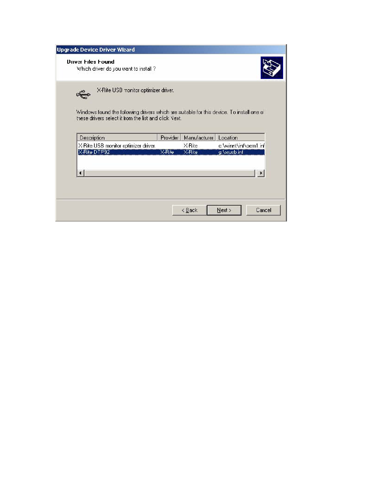 Select the driver from the list that matches the Location from which you just installed the new driver
