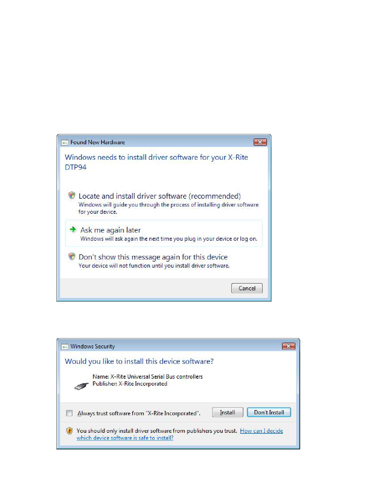 Copy the drivers folder into C:\Windows\inf folder. When you plug the instrument the following dialog may