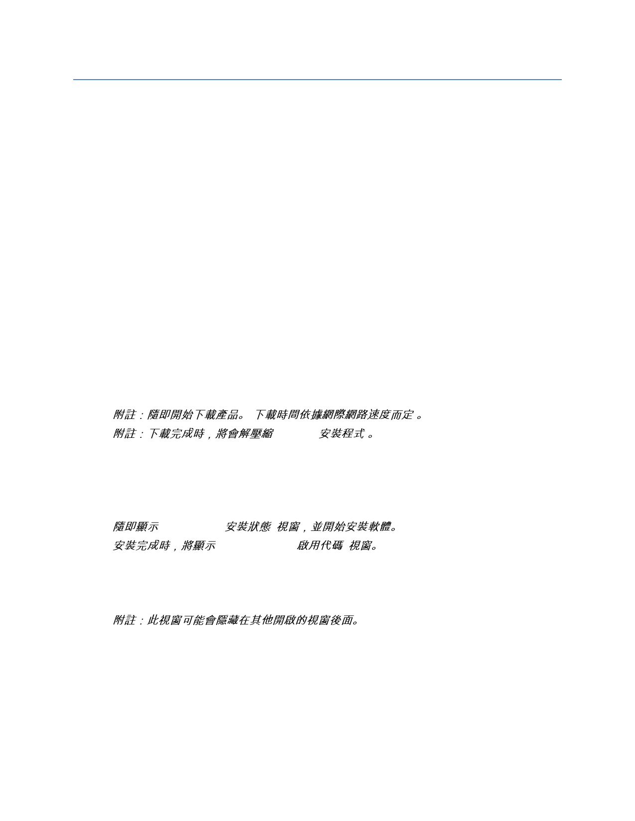 附註:隨即開始下載產品。(下載時間依據網際網路速度而定)。