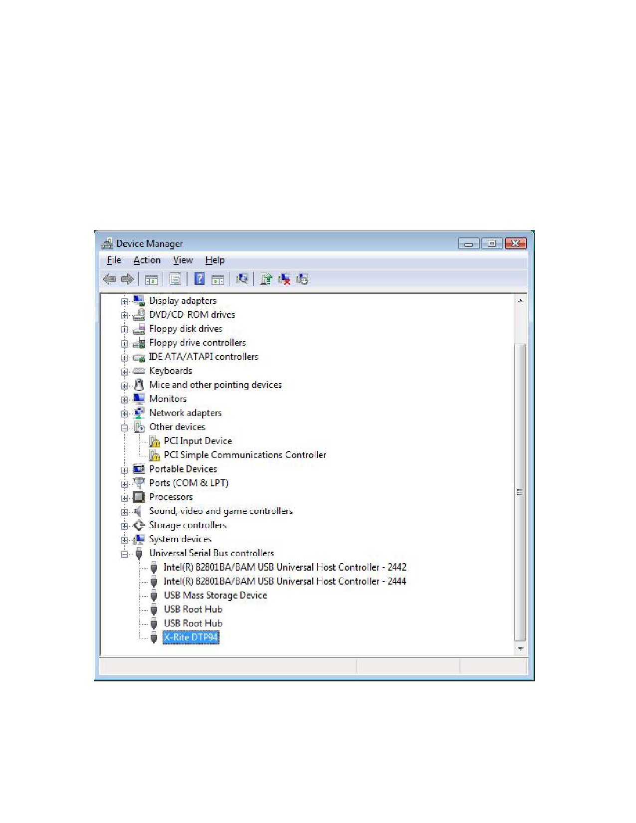 system does not already have an X-Rite USB device installed. To view the device manager, right click on the