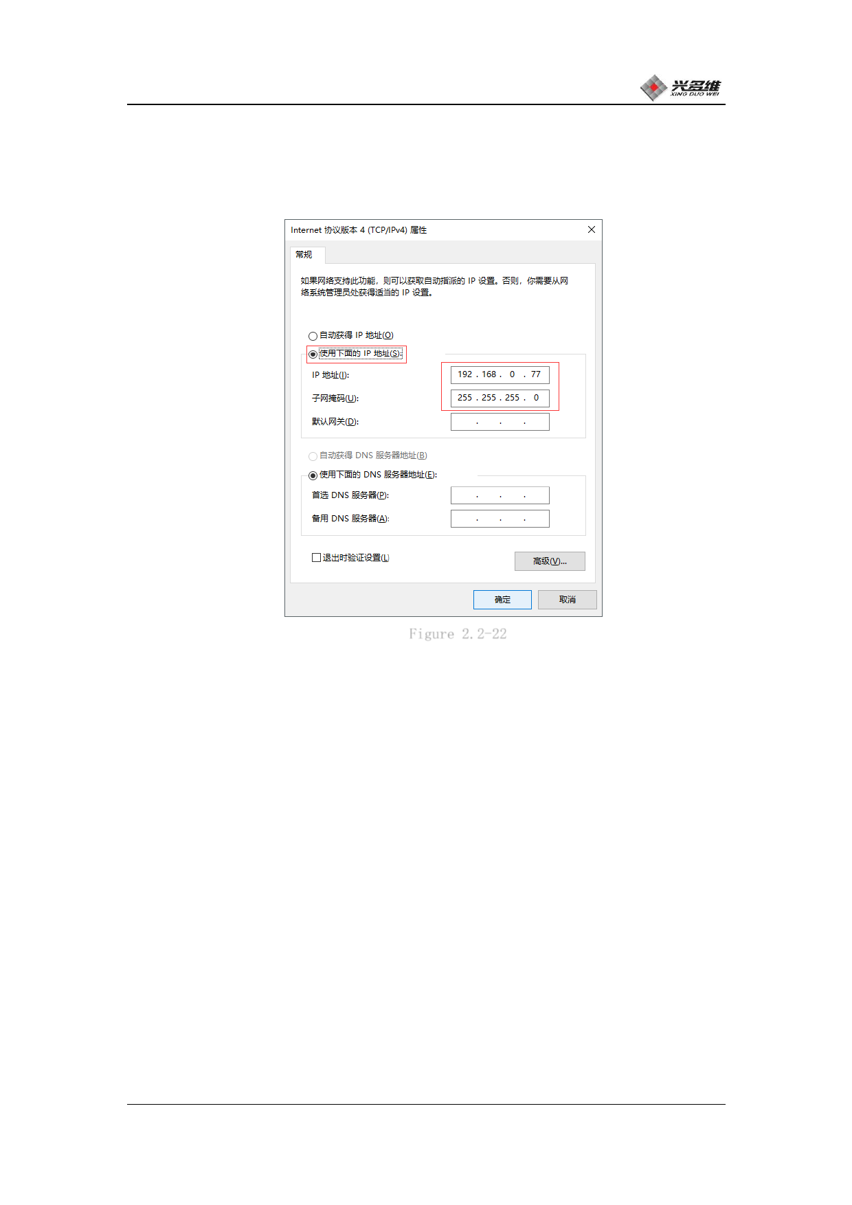 up property box to change the IP address and subnet mask, as shown in