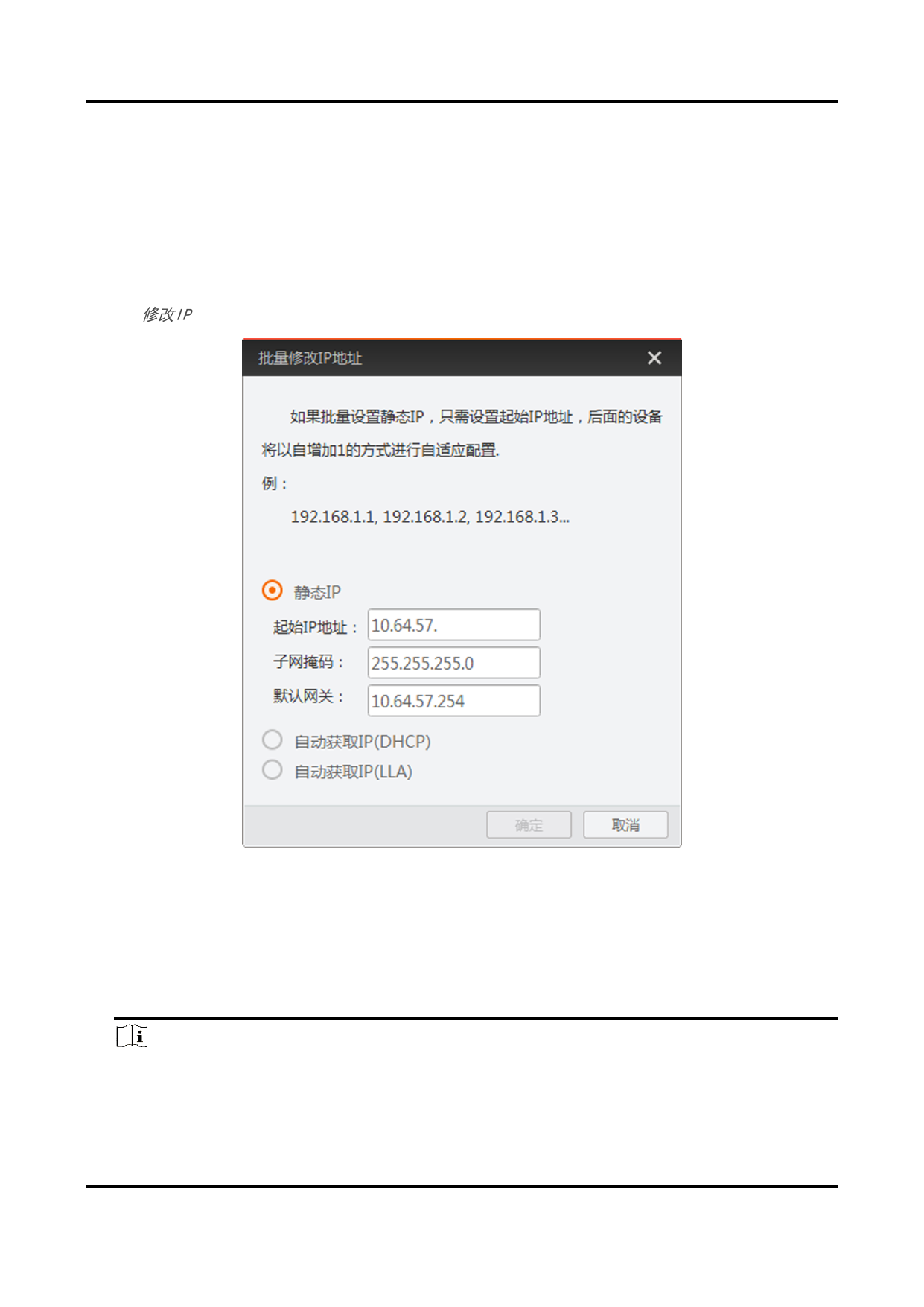 2. 点击修改IP进入批量修改IP地址窗口,如下图所示。