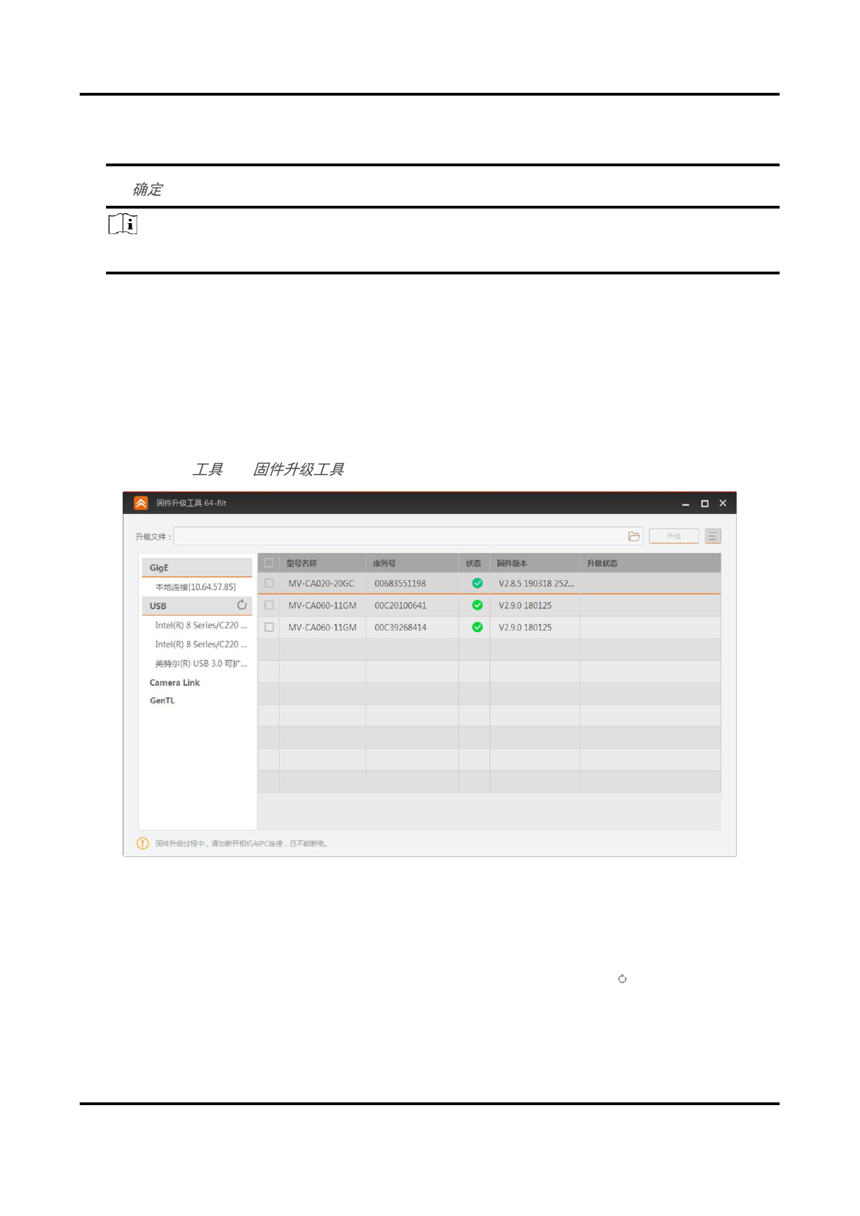 固件升级工具支持对网口相机、USB相机、Camera Link相机、CoaXPress相机、采集卡进行固件升级。
