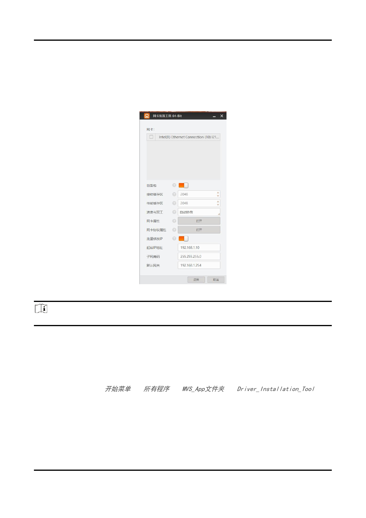 可设置网卡和该网卡下相机的起始IP地址。
