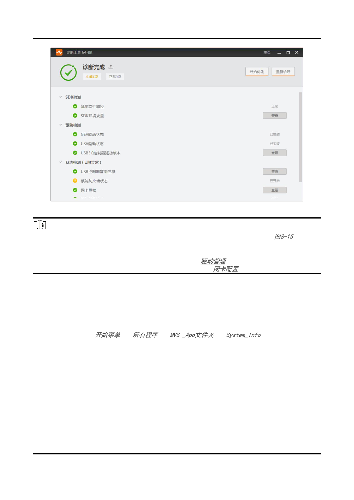 诊断工具同时支持一键打开日志查看工具,驱动管理工具以及网卡配置工具 。通过单击图8-15界面下方