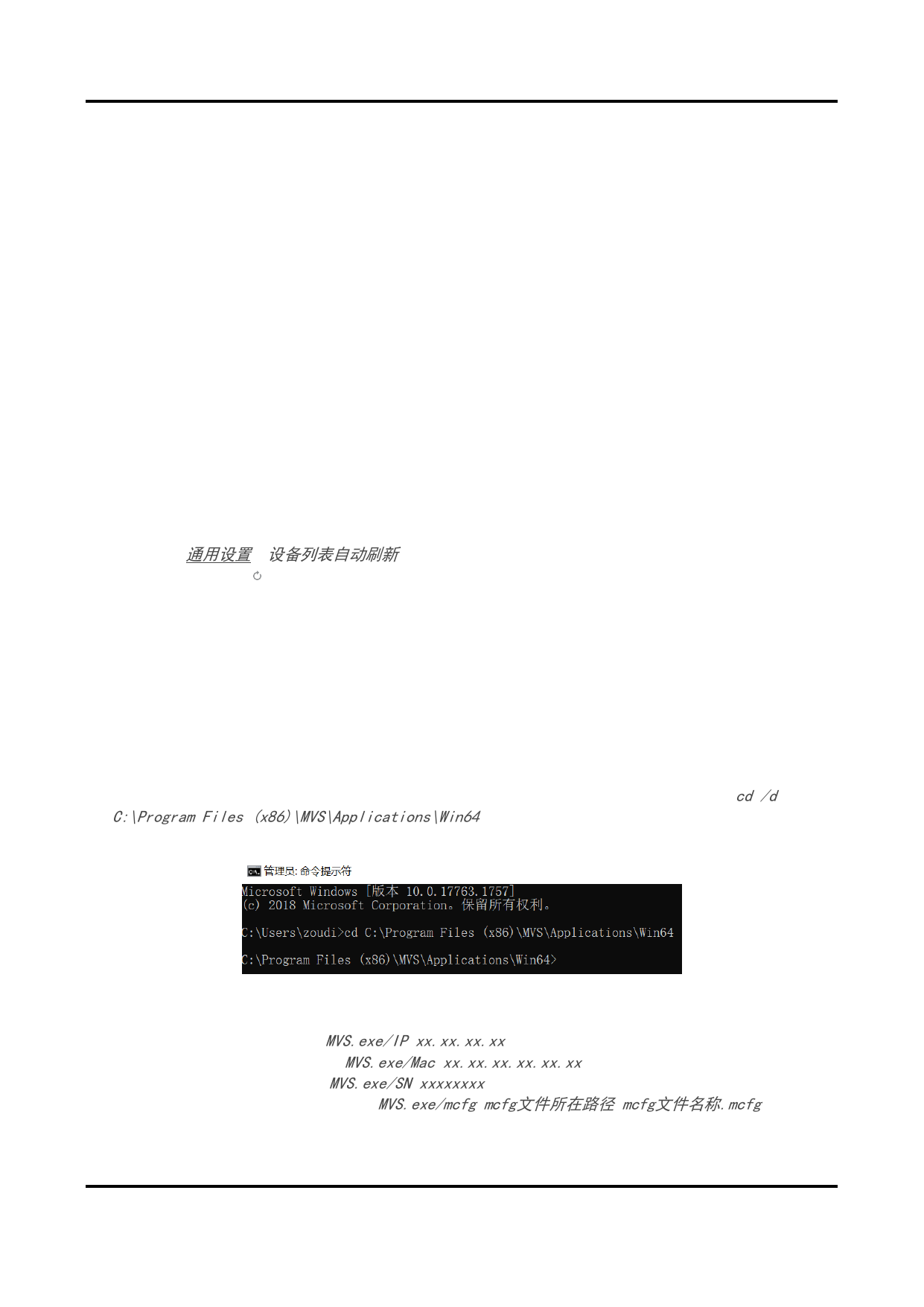 若MVS.exe所在路径为“C:\Program Files (x86)\MVS\Applications\Win64”,则输入内容为cd /d