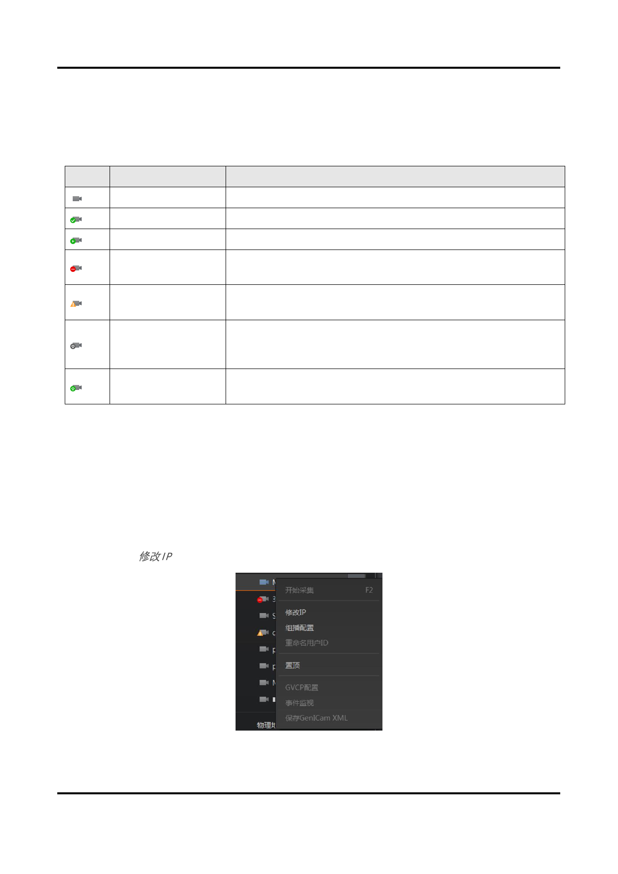 对于不同状态的网口相机,设备列表的相机图标有所差别。