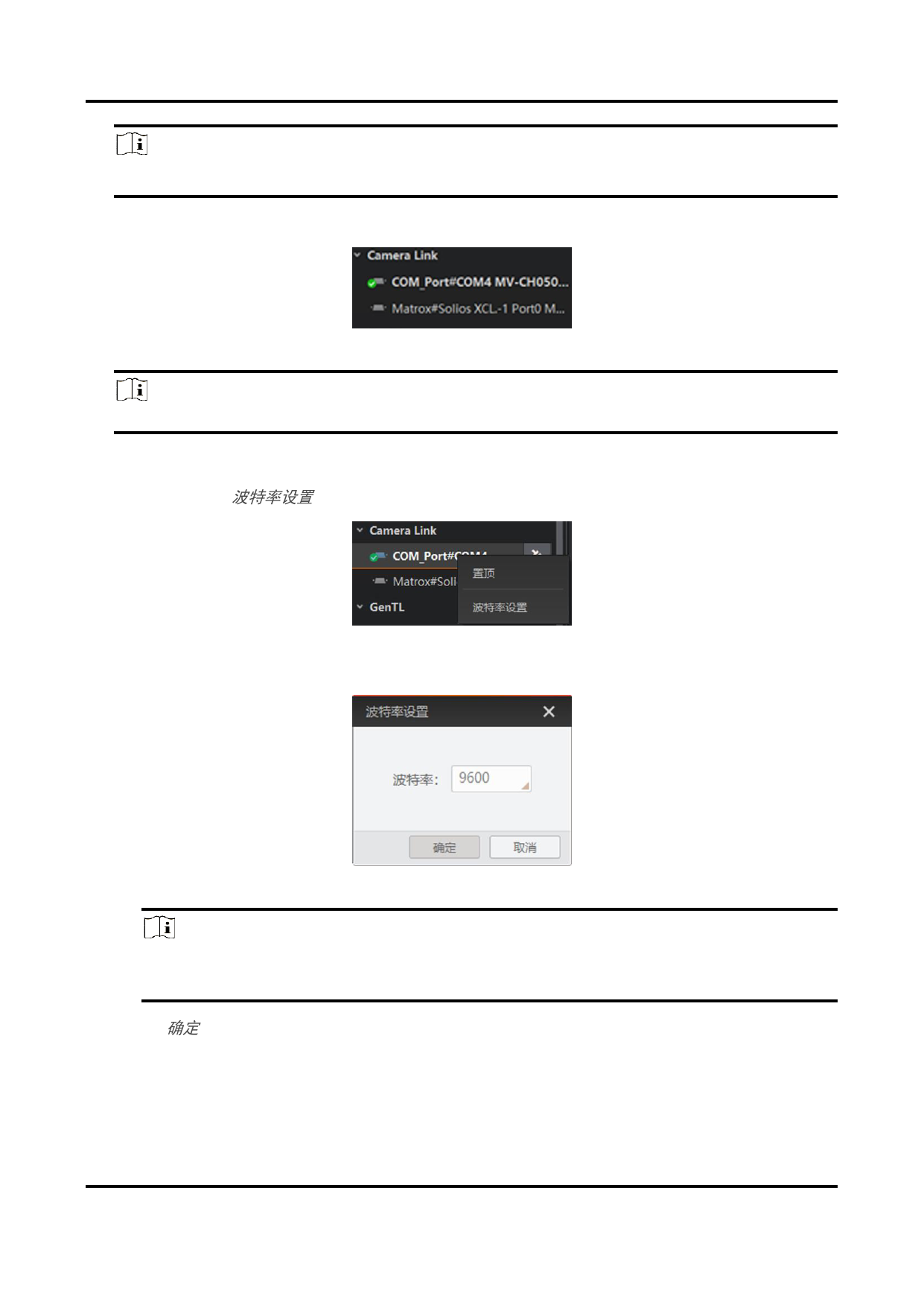 波特率默认为9600,实际使用中建议设置为115200,可以提高客户端连接Camera Link相机的速