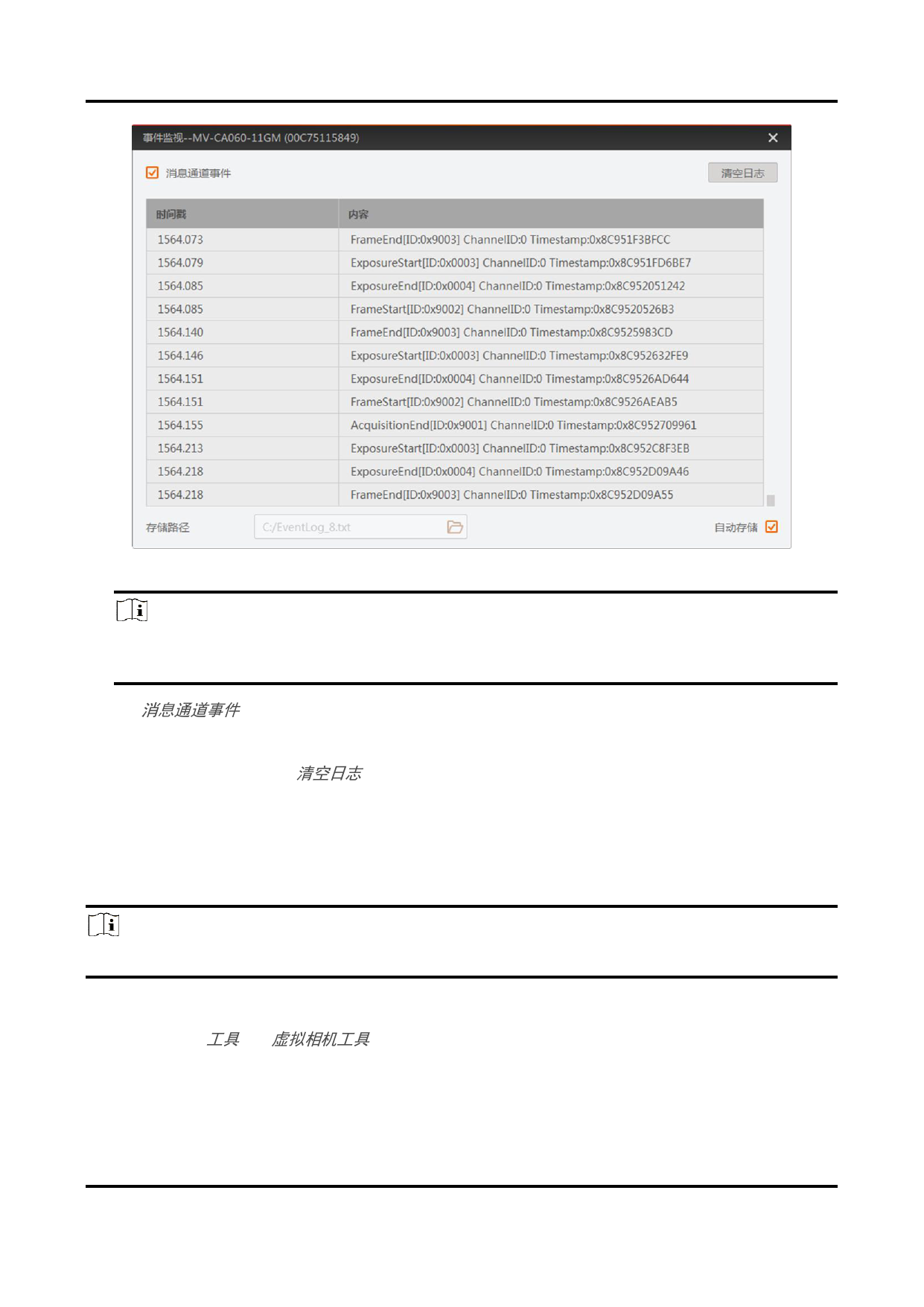 事件监视窗口最多显示10000条事件信息。若需查看全部信息,请设置自动存储功能,打开txt文件进