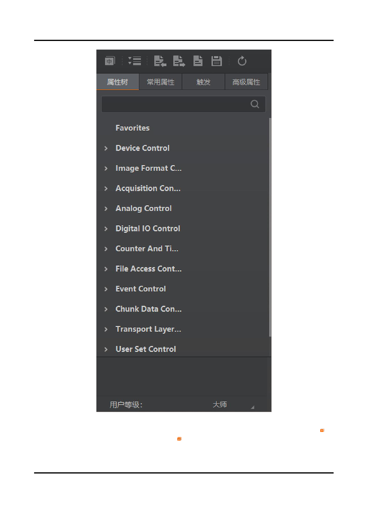 客户端可对相机属性树的中英文进行单独切换,默认客户端属性树为英文,可通过点击左上角的 实