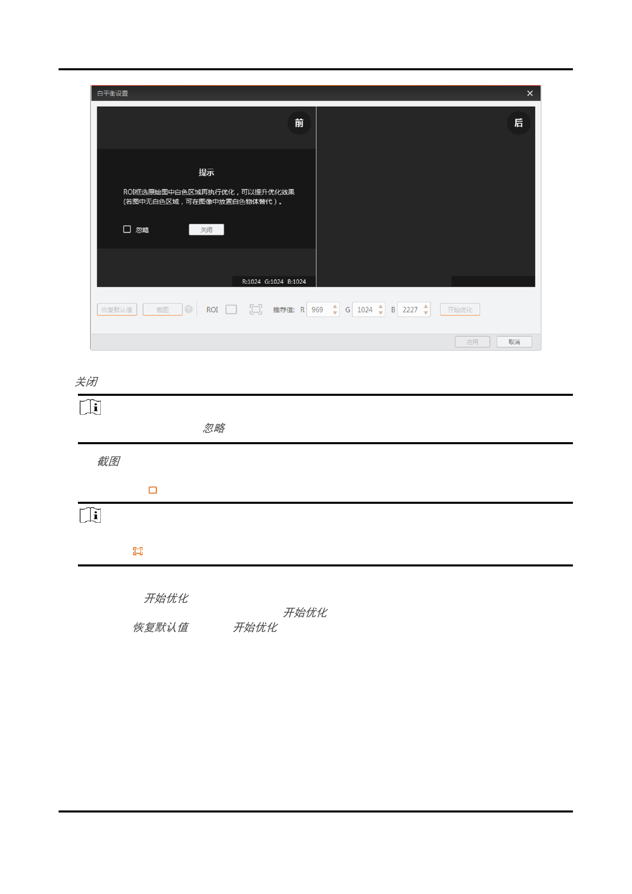 ● ROI框选区域需包含白色区域,可提高白平衡优化效果。