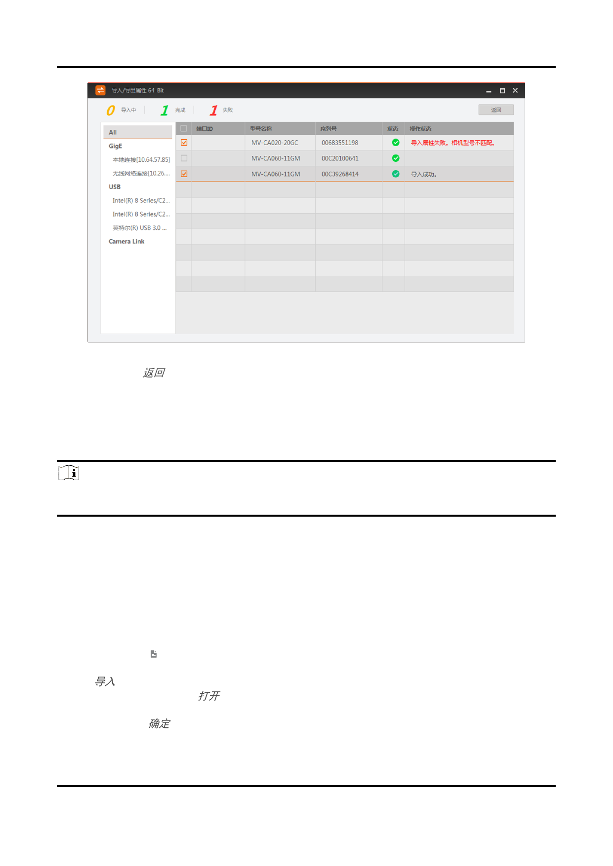 2. 选择需要导入的设备属性。
