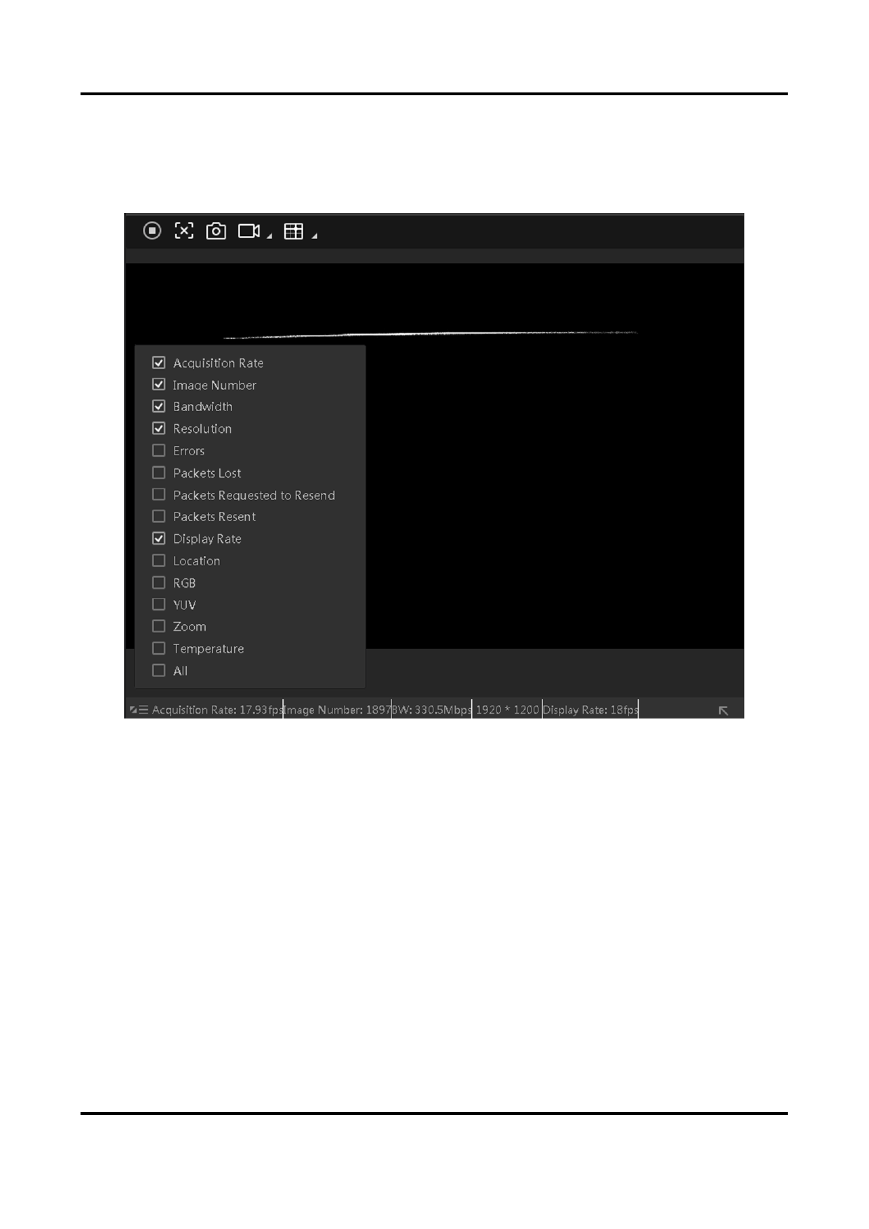 For GigE Vision cameras, you can select the following status parameters: acquisition rate,