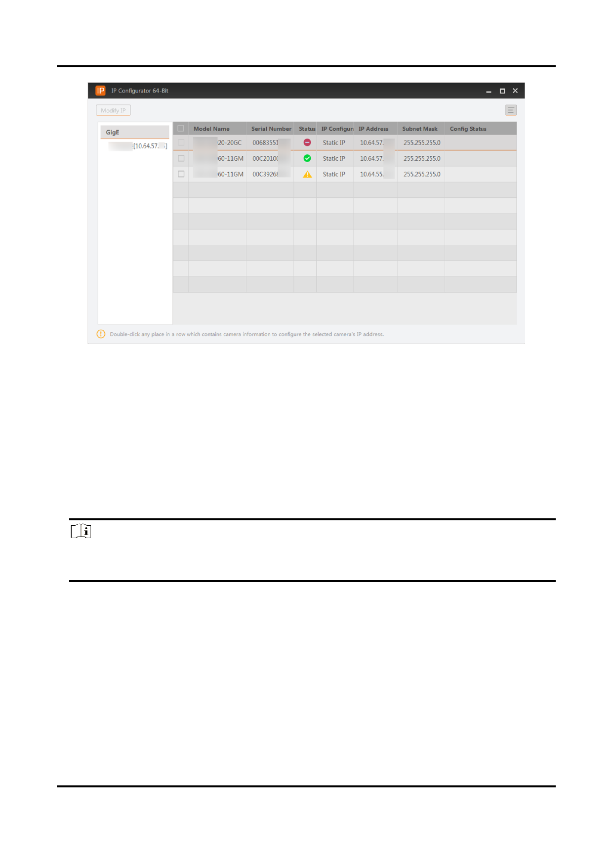 2. Double-click any place in the camera row to open the Modify IP Address window.