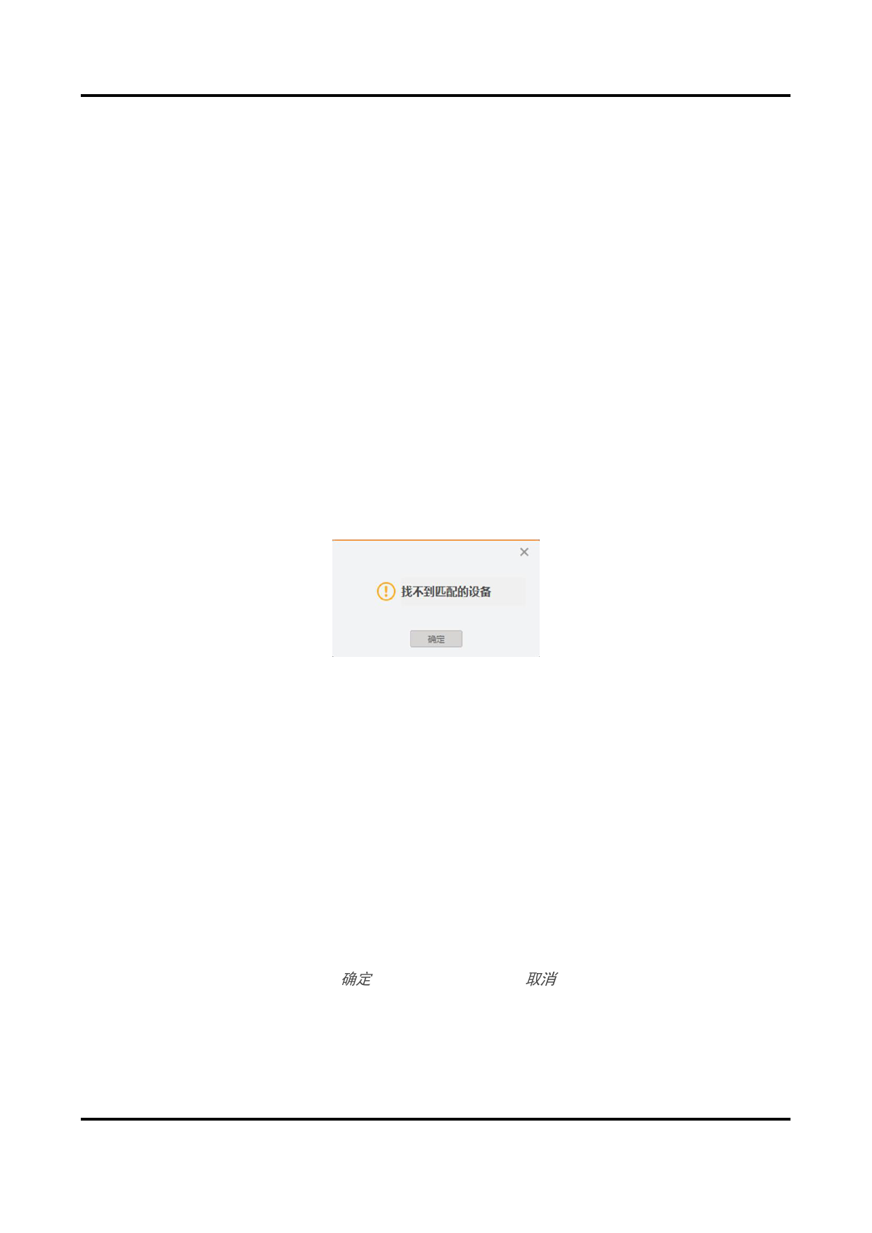 ● 若配置文件中所包含的相机都无法连接,客户端会弹出提示框,提示“找不到匹配的设备”,如
