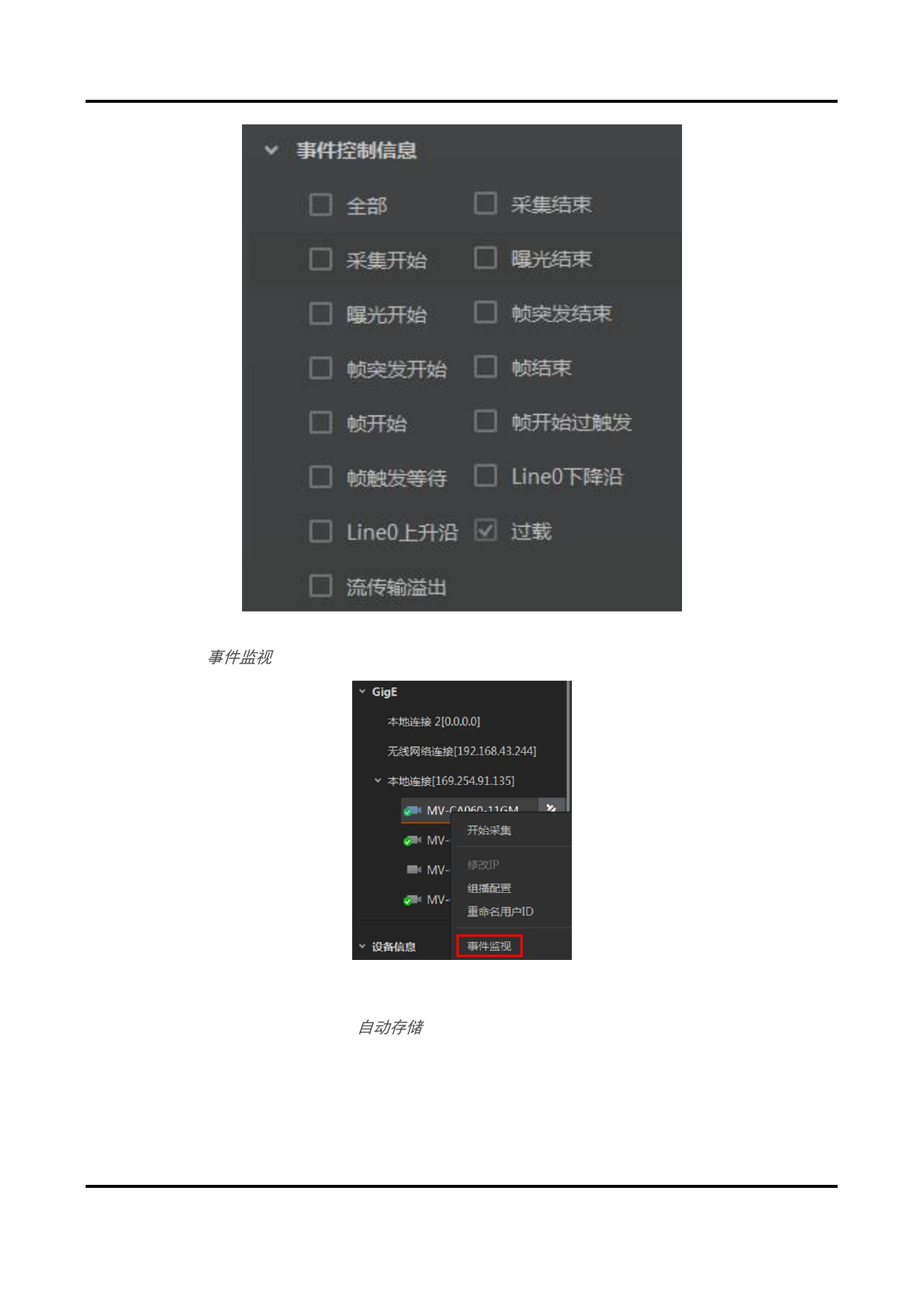 可设置相机事件信息的自动存储。在事件监视窗口左下角的存储路径处设置事件
