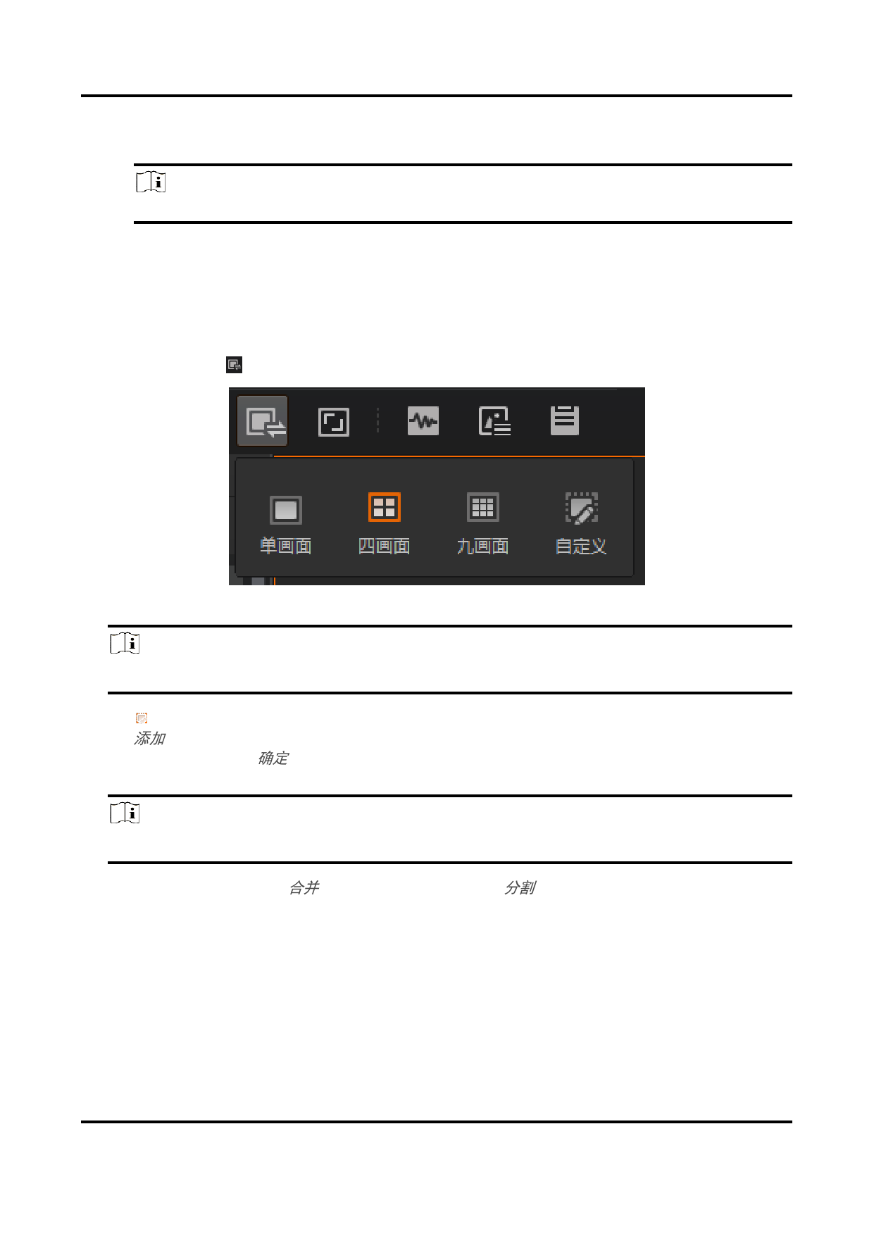 6. 根据需求选择相邻画面进行合并,也可选择已合并画面进行分割来完成画面布局的调整,如下图所