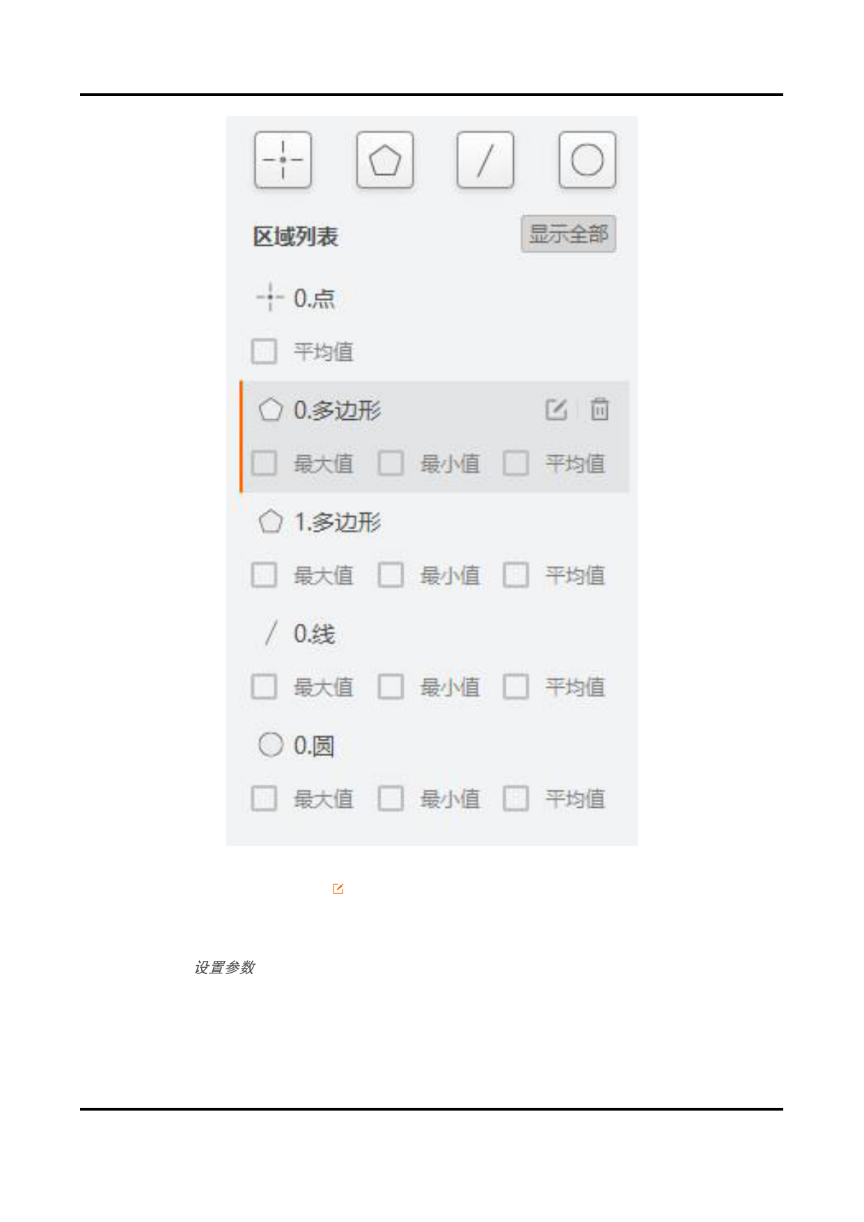 边形、线和圆区域支持显示最大值、最小值和平均值。