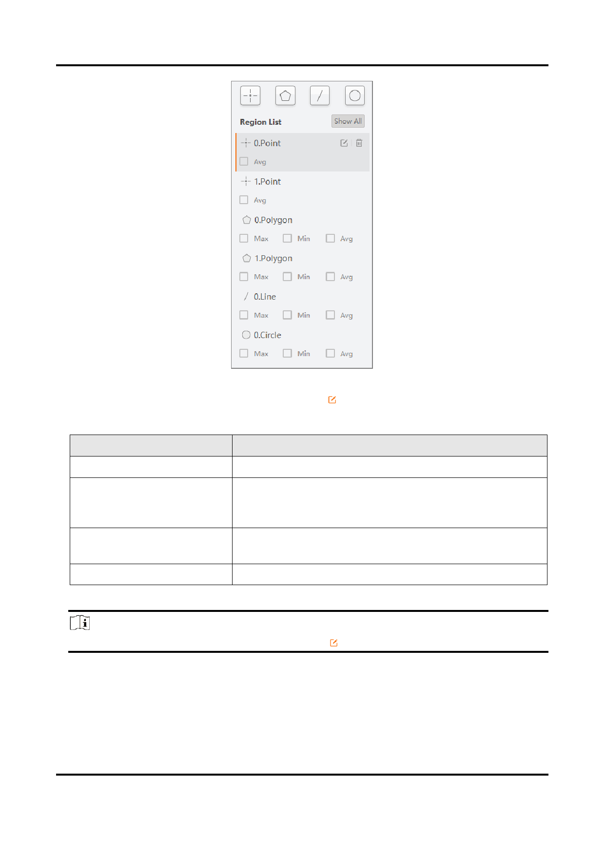 4. From the list, select a region to be drawn, click , and draw on the live view window