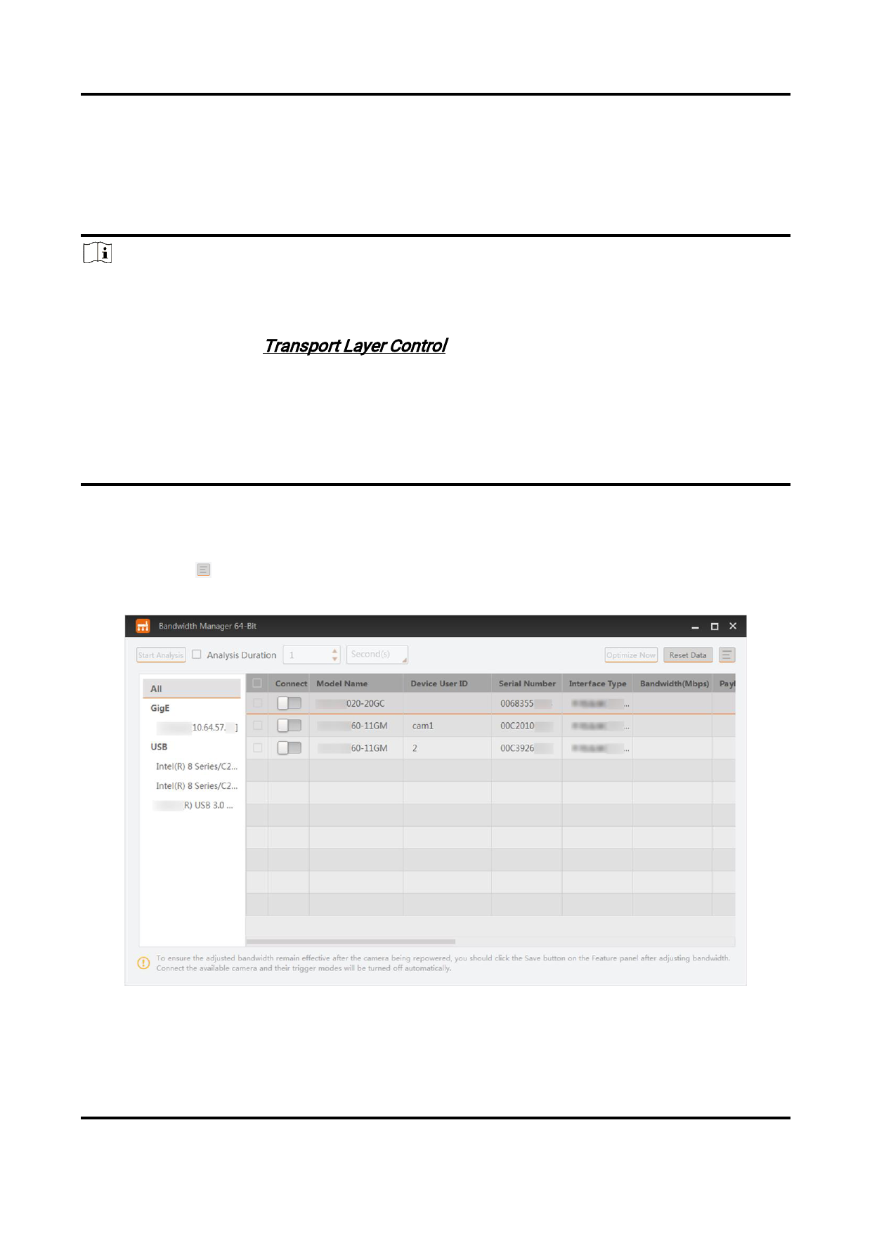 by Bandwidth Manager. You can also adjust bandwidth for USB3 Vison cameras by