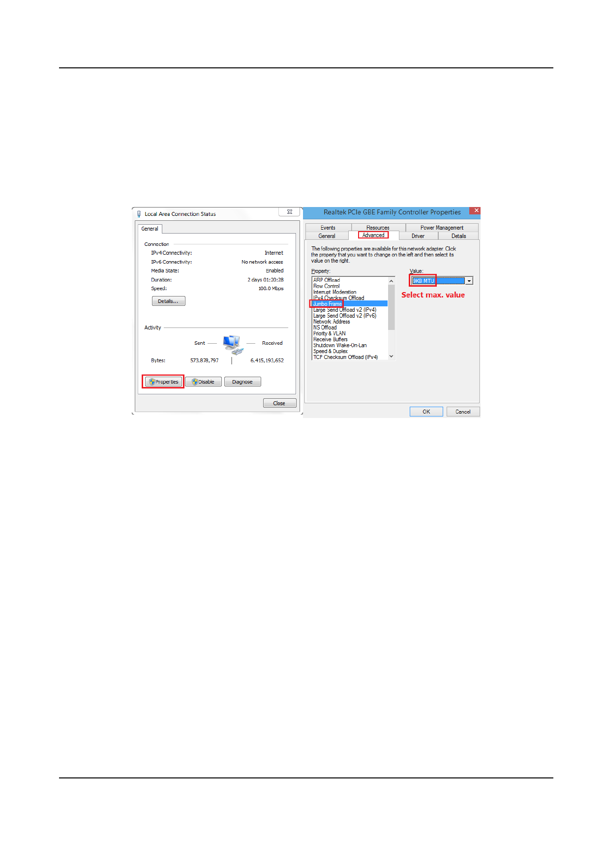 It is recommended to use Intel series 1000M NIC, and go to Local Area Connection Status to enable