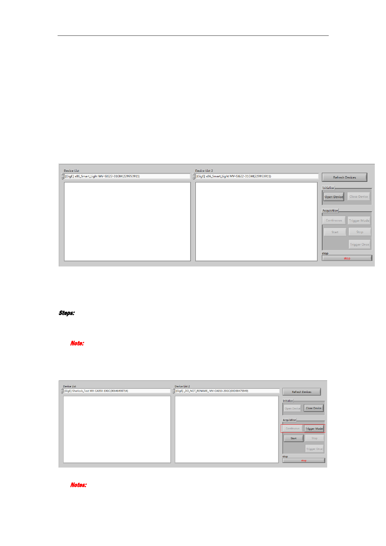4. Select image acquisition mode as Continuous or Trigger Mode.