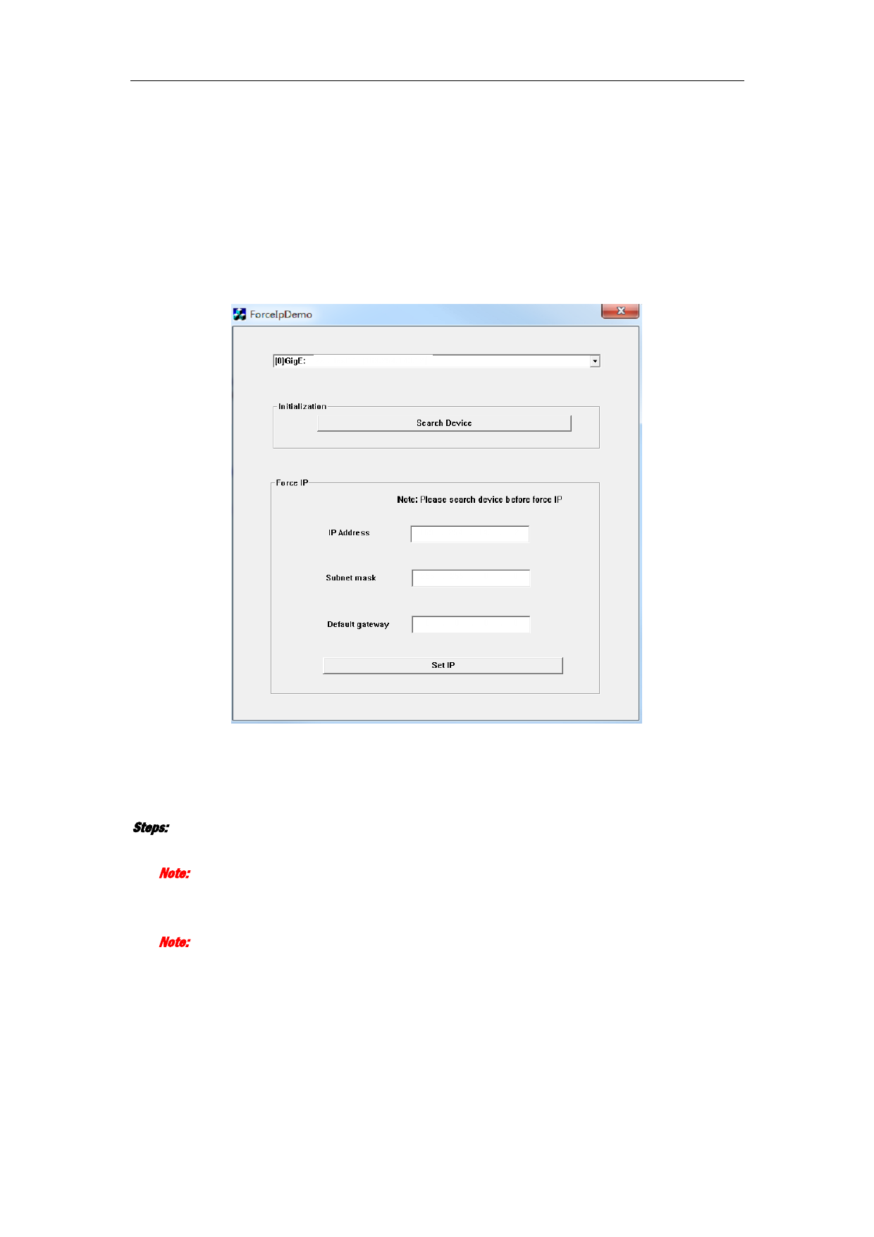Note: In the Set IP field, the IP segment of local NIC and suggested IP range will be displayed in prompt