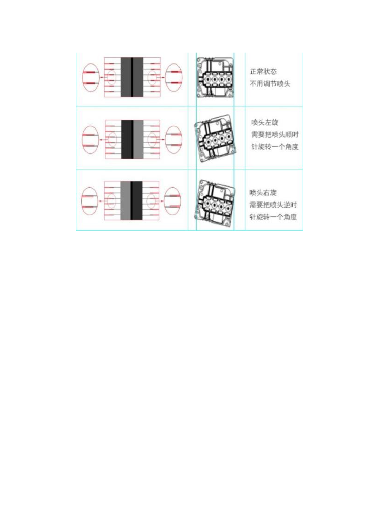 1、 中间的两个色块的深浅不能代表喷头的旋转方向,只是提示用户喷 头的位