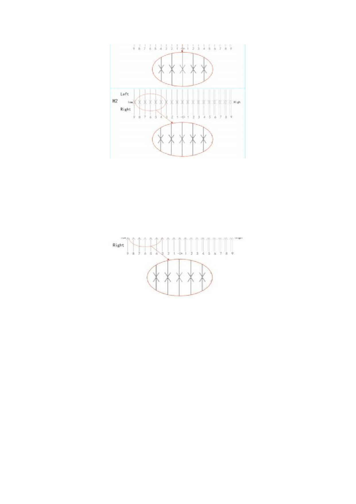校准图下面的数字代表着喷头的高度,所以如果不同的喷头间的检测图的 箭头对齐位
